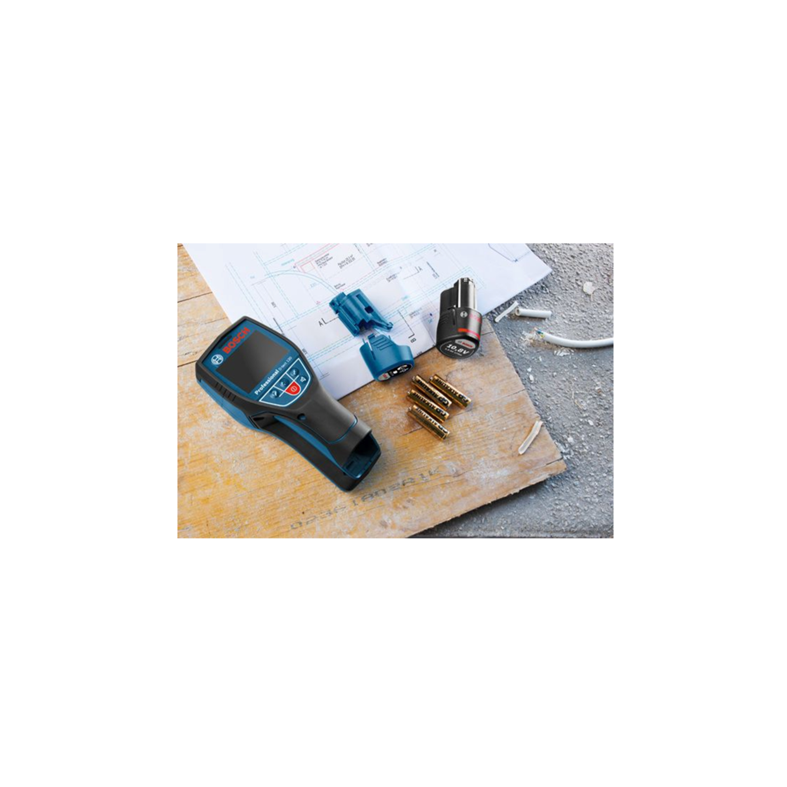 The detector D-tect 120 Professional is an intuitive radar scanner developed for almost all materials. Spot measurement provides accurate detection on narrow surfaces, while the centre finder shows the precise location of an object's centre. Additionally, Dual Power Source technology allows for use with both a 12 V Li-ion battery or standard alkaline batteries