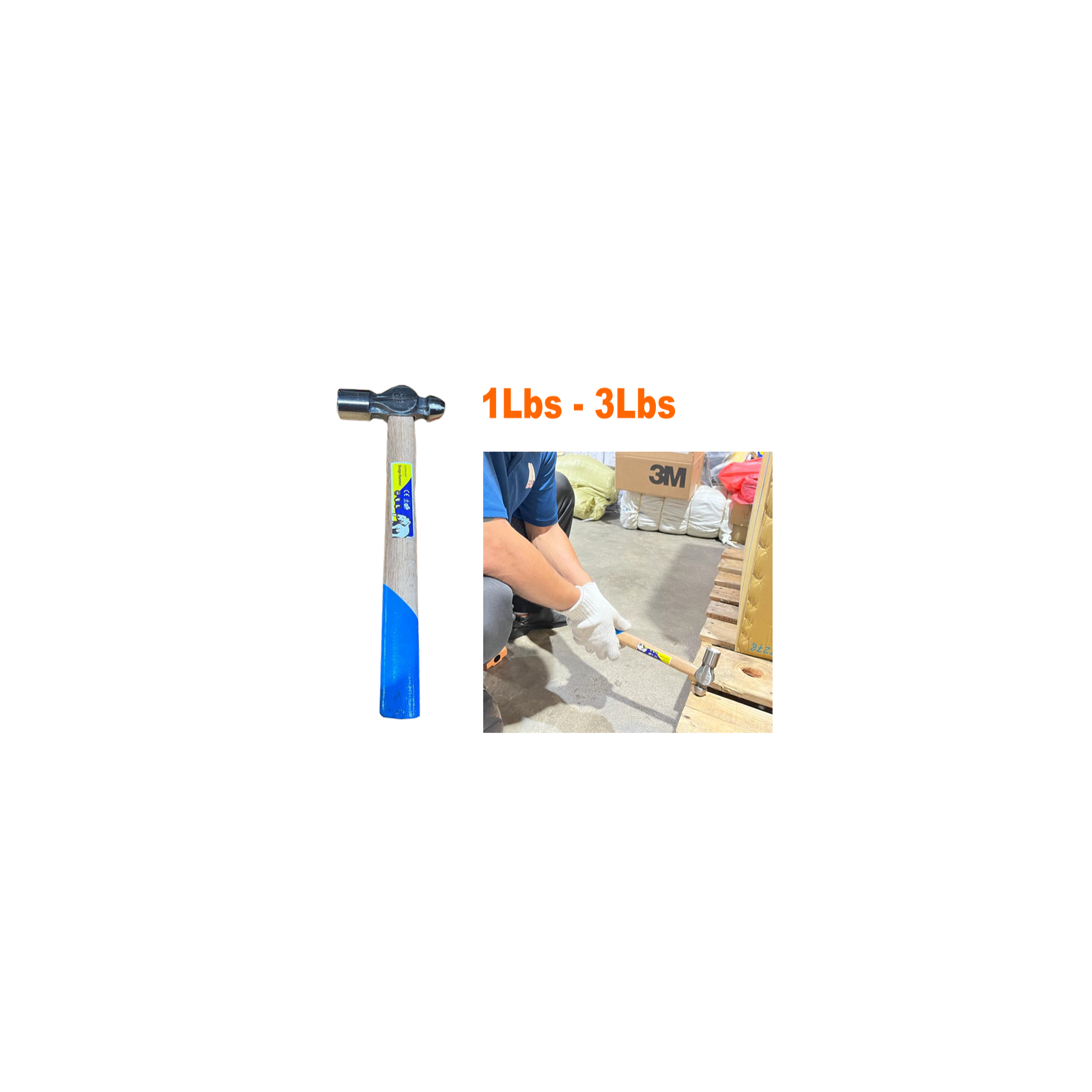 ELEPHANT Ball Pein Hammer with Wooden Handle. 1lbs to 3lbs.