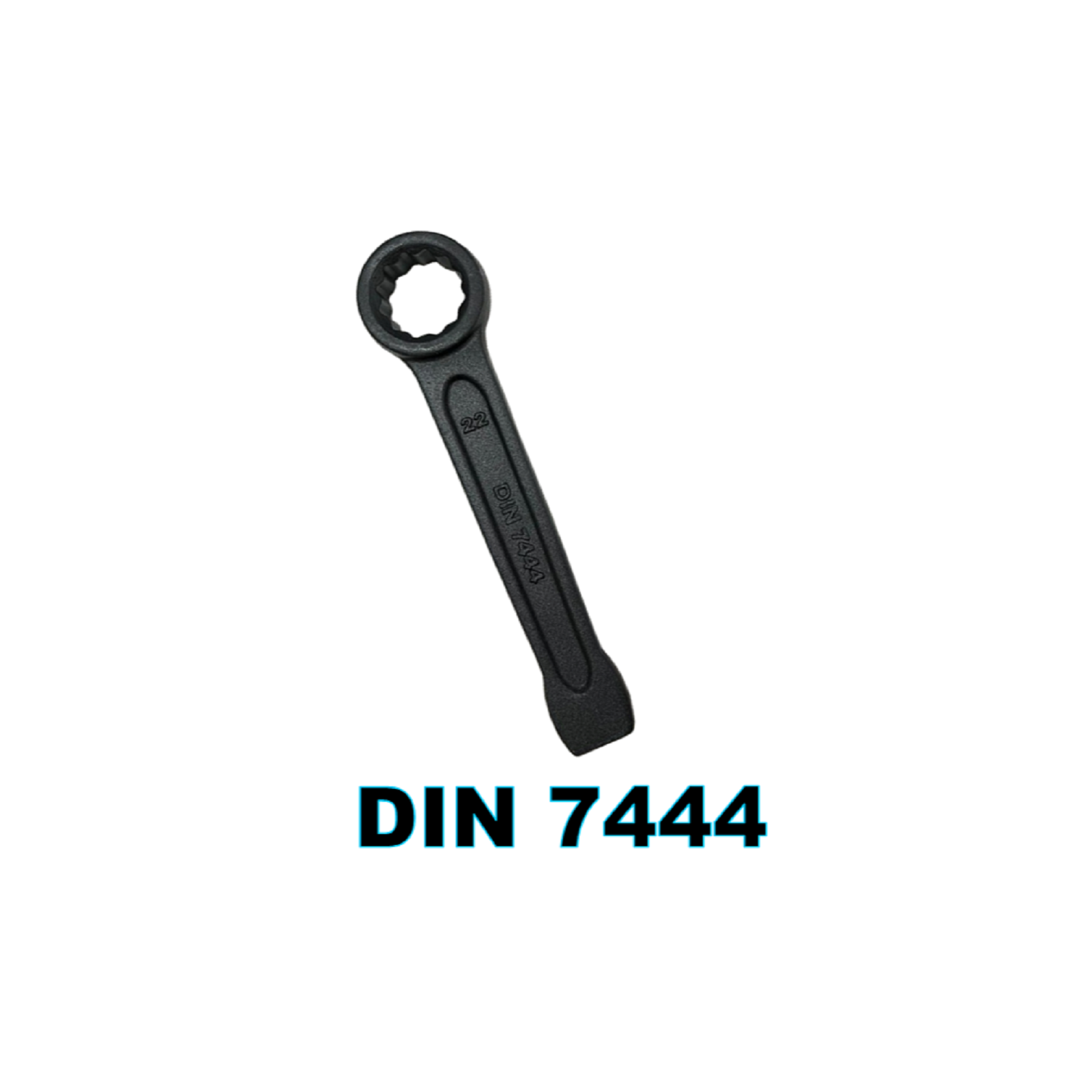 DIN7444 Slogging ring wrench is a tool with one end closed loop like socket/box end while the handle at the other end is a block end for enabling impact with the use of a hammer.