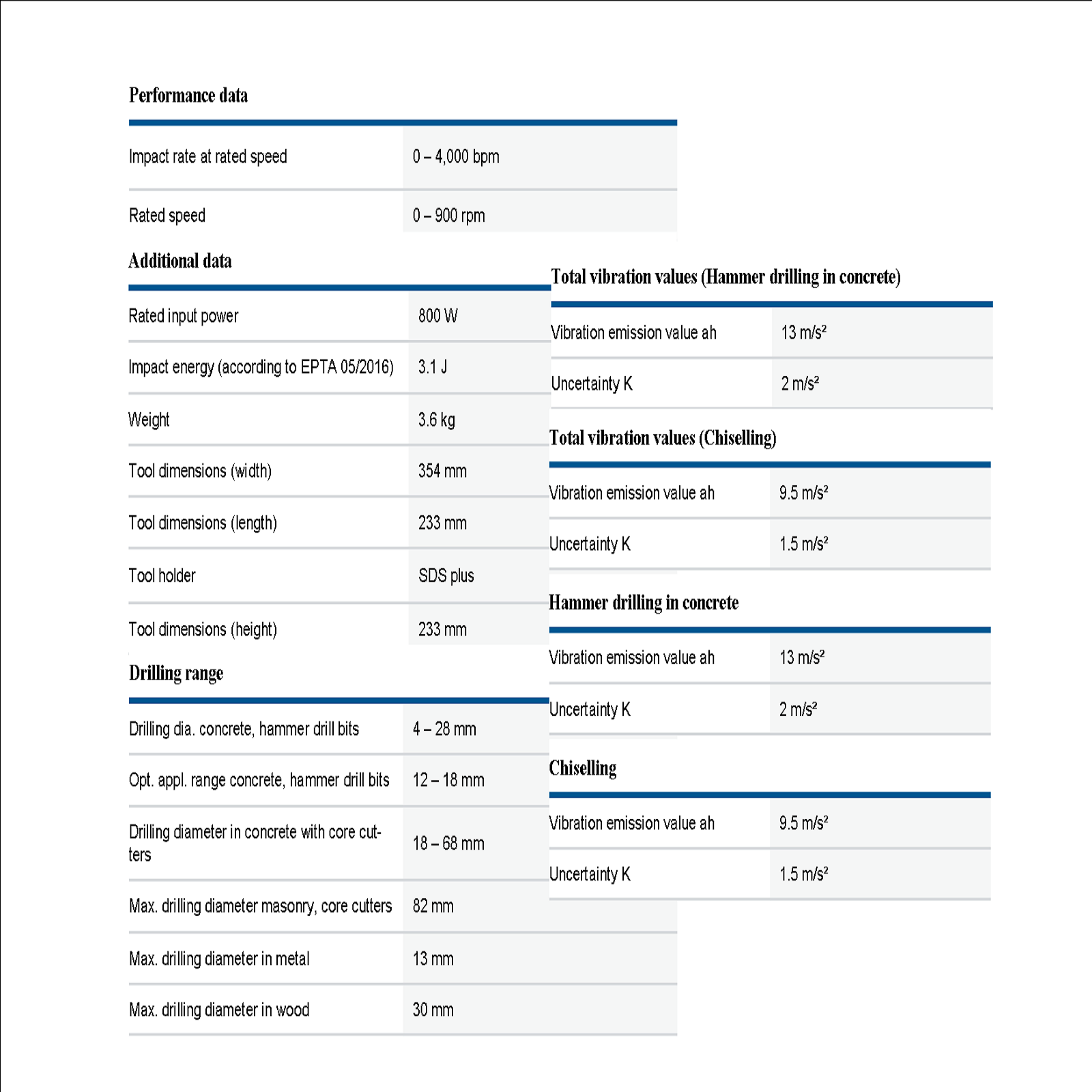 - BOSCH GBH 3-28DFR Professional- Rotary Hammer with SDS Plus. - Top performance with 20% less vibration. -High drilling rate and 20% higher chiselling power than other rotary hammers in its class. - 20% less vibration than other hammers in its class for more comfortable working due to Bosch Vibration Control. - Quick change chuck for fast changes between drilling with impact in concrete and drilling without impact in wood and metal. - Balanced weight distribution due to L-shaped design for more comfortable working. - Rotation stop for chiselling.