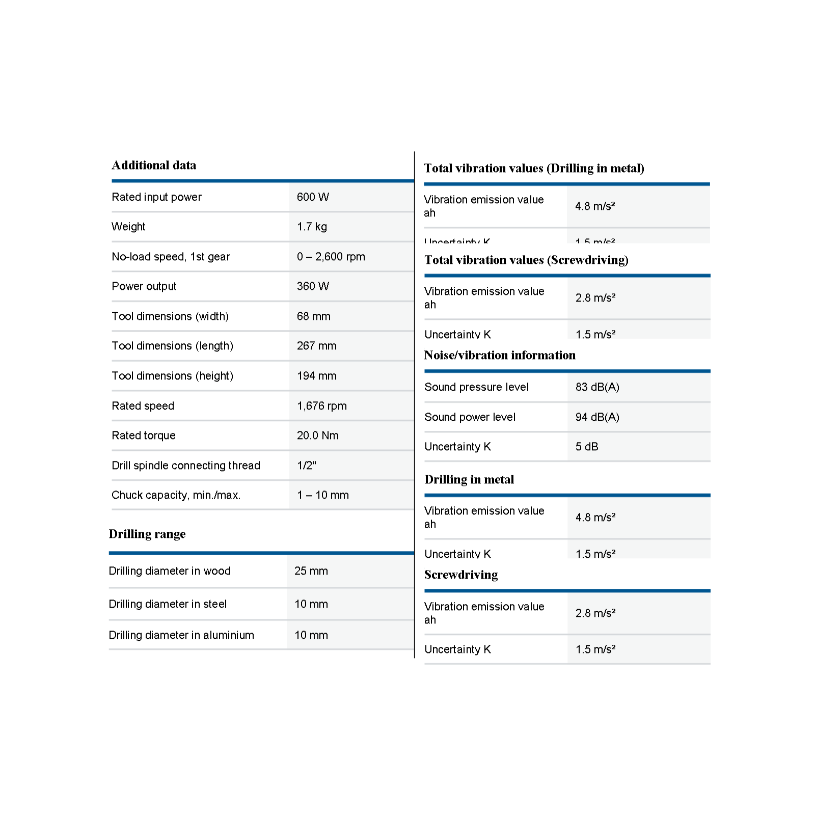 - Powerful motor of 450W, ideal for drilling holes up to 10mm in diameter in metal.