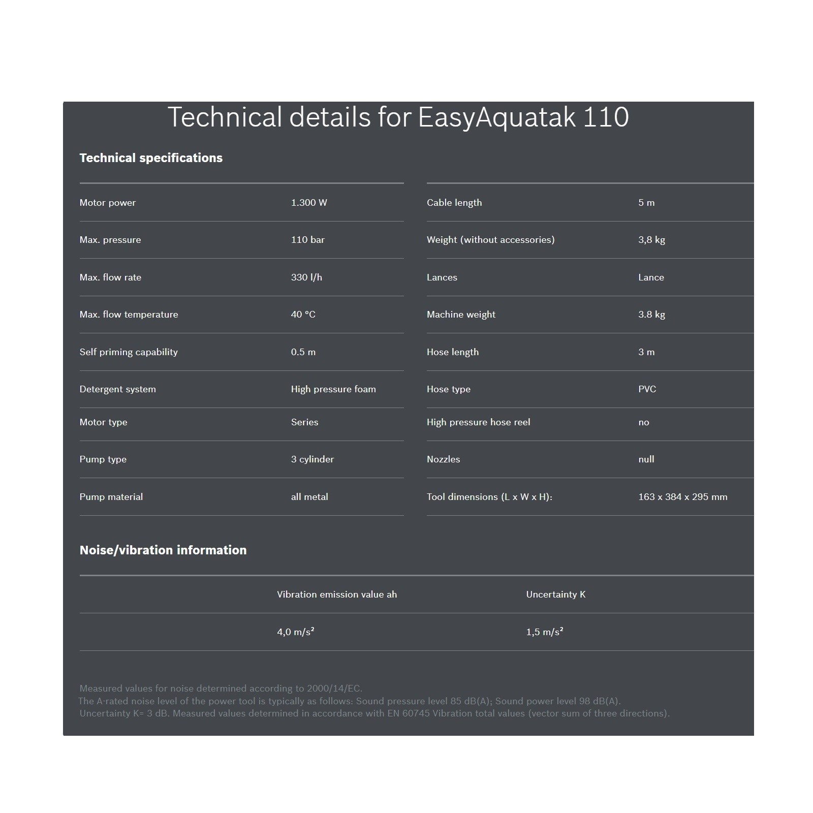 - BOSCH EASY AQUATAK 110- this compact high-pressure washer is ideal for small-to-medium jobs around the house. .