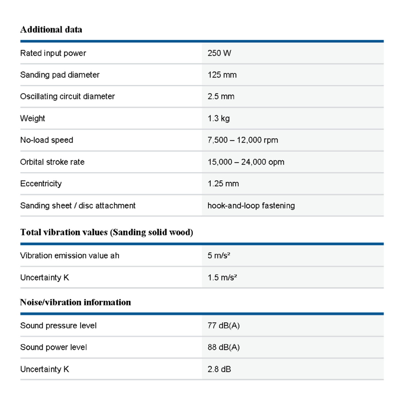 Total vibration values (Sanding solid wood) Vibration emission value ah