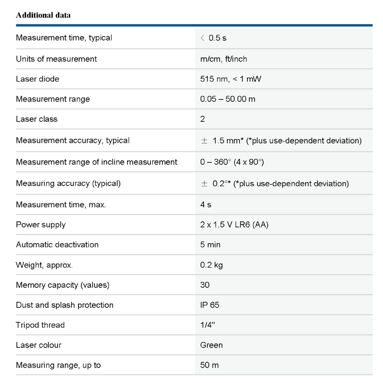 Measurement time, typical