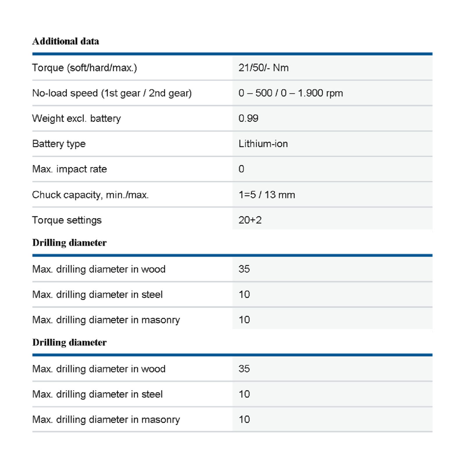 - Drilling diameter in wood