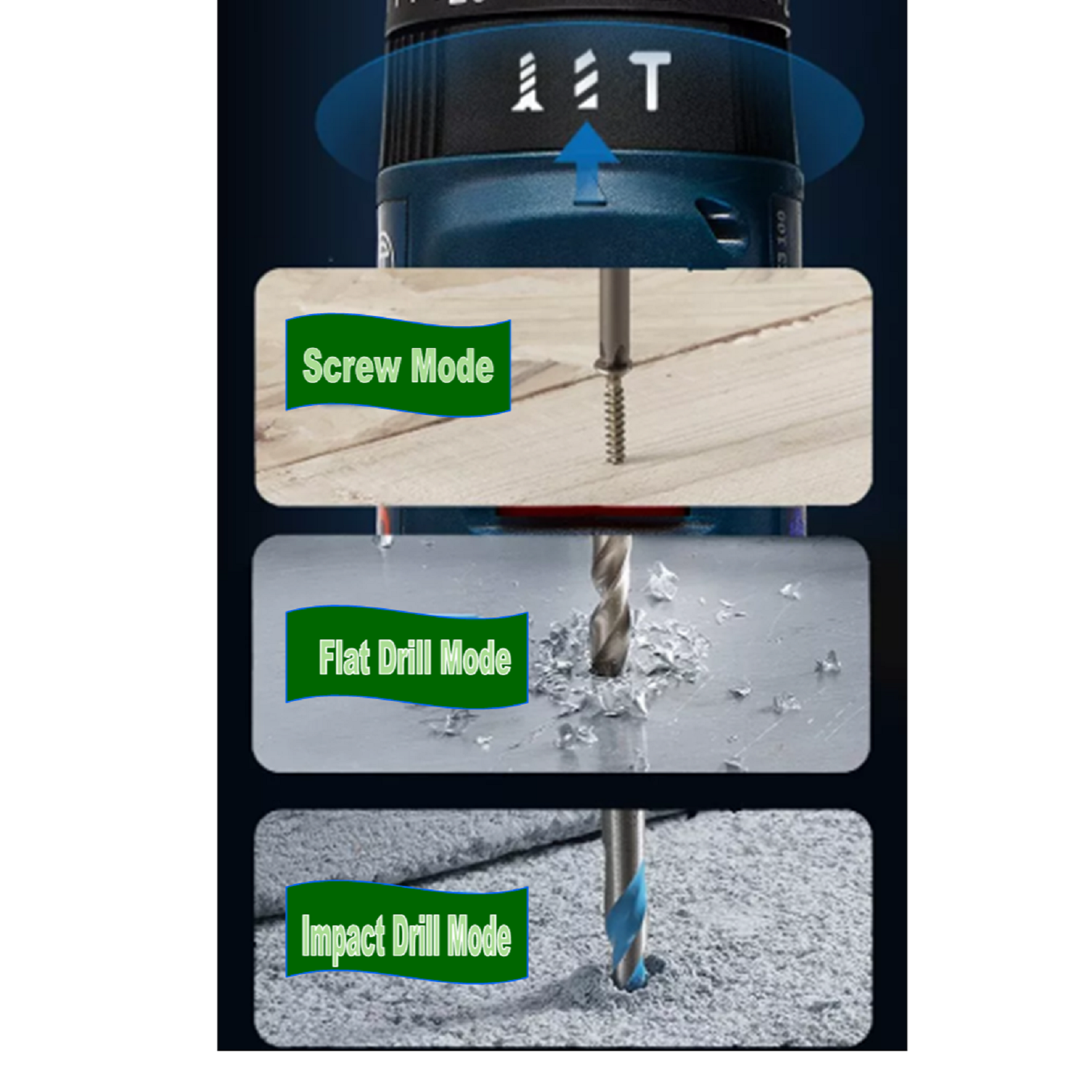 - Ideal in narrow spaces for screwdriving in wood and drilling in wood, metal and masonry.