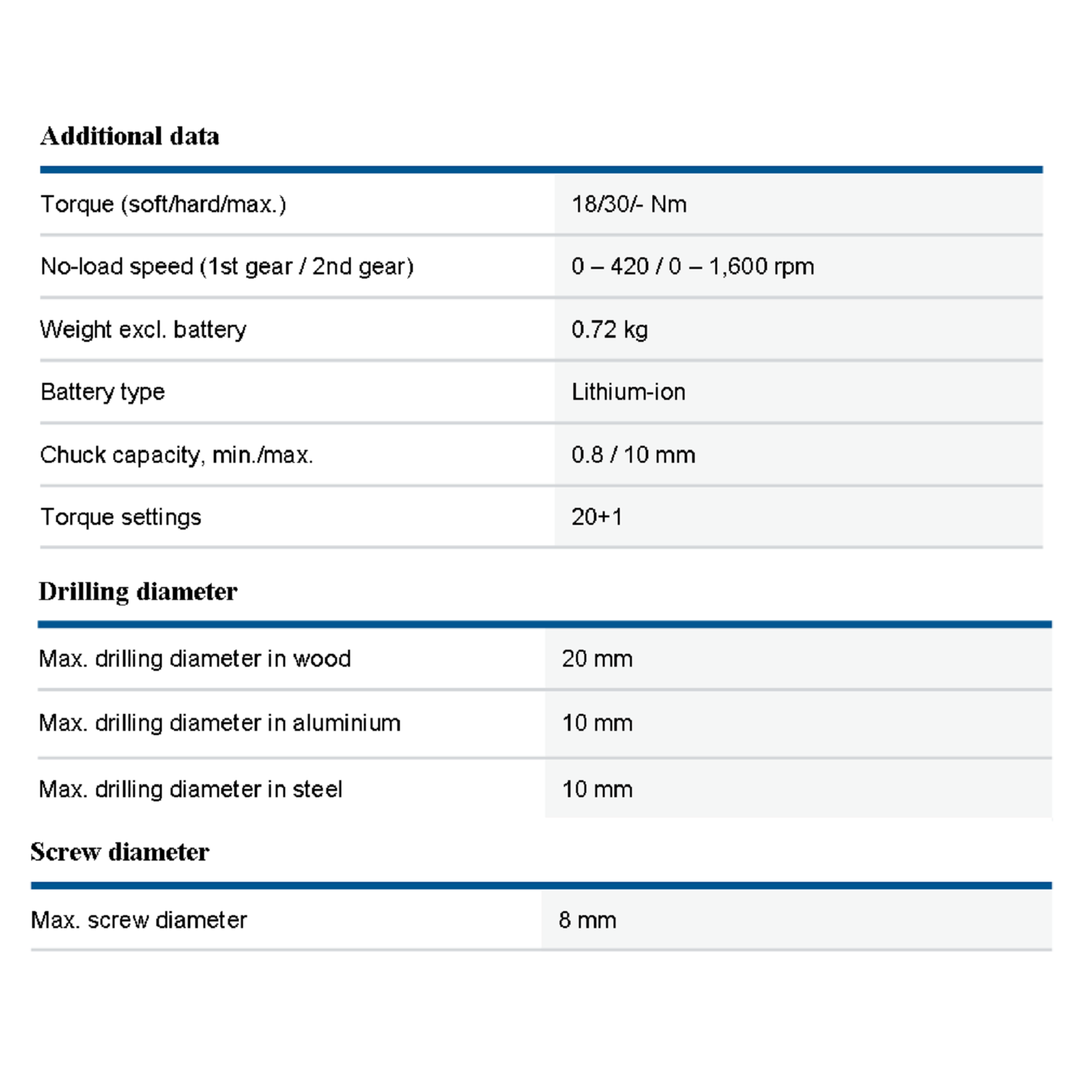 - Max drilling diameter in wood