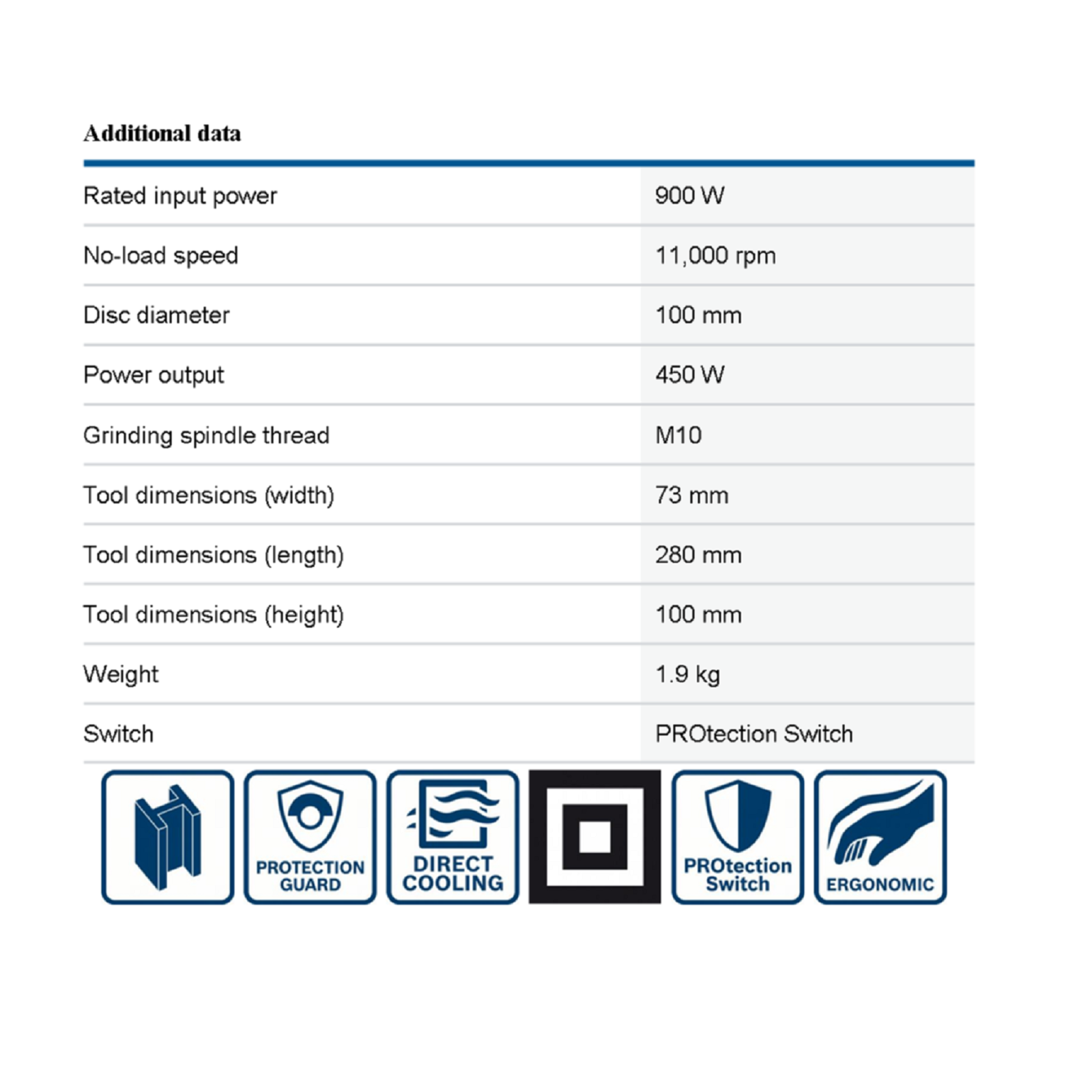 - Superior cutting and grinding experience thanks to highly efficient 900 W motor.